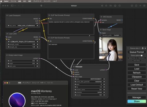 ComfyUI実行画面 この記事では、Intel MacにComfyUIの実行環境を構築する手順を簡略化して説明します。Pythonの仮想環境を使用し、ComfyUIと関連する依存関係をインストールします。また、ComfyUI-Managerをセットアップする方法や、Numpyに関するエラーの対…