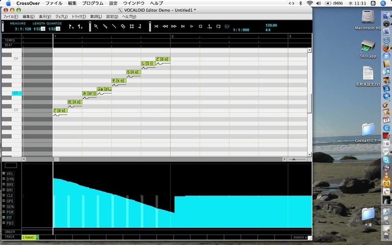 CrossOver Mac 6.3 + VOCALOID2 初音ミク