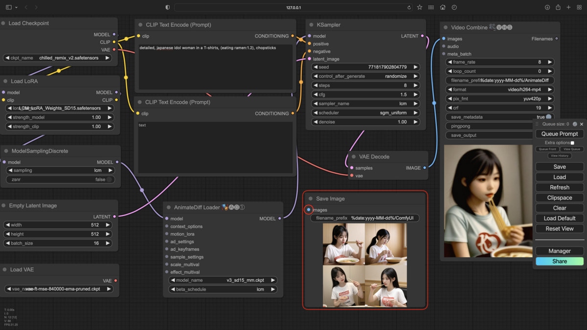 Re:Re:らーめんチャレンジ - Intel Mac で ComfyUI構築、AnimateDiff+LCMで動画生成に挑戦